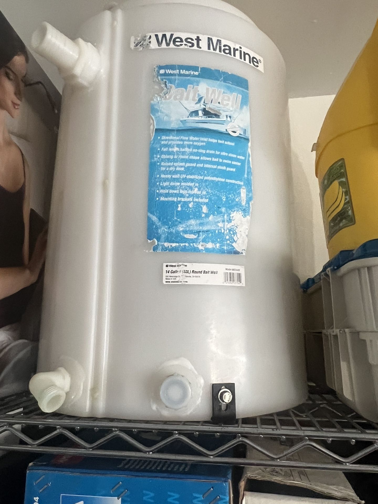 14 gallon West Marine round baitwell. Used once and in excellent condition