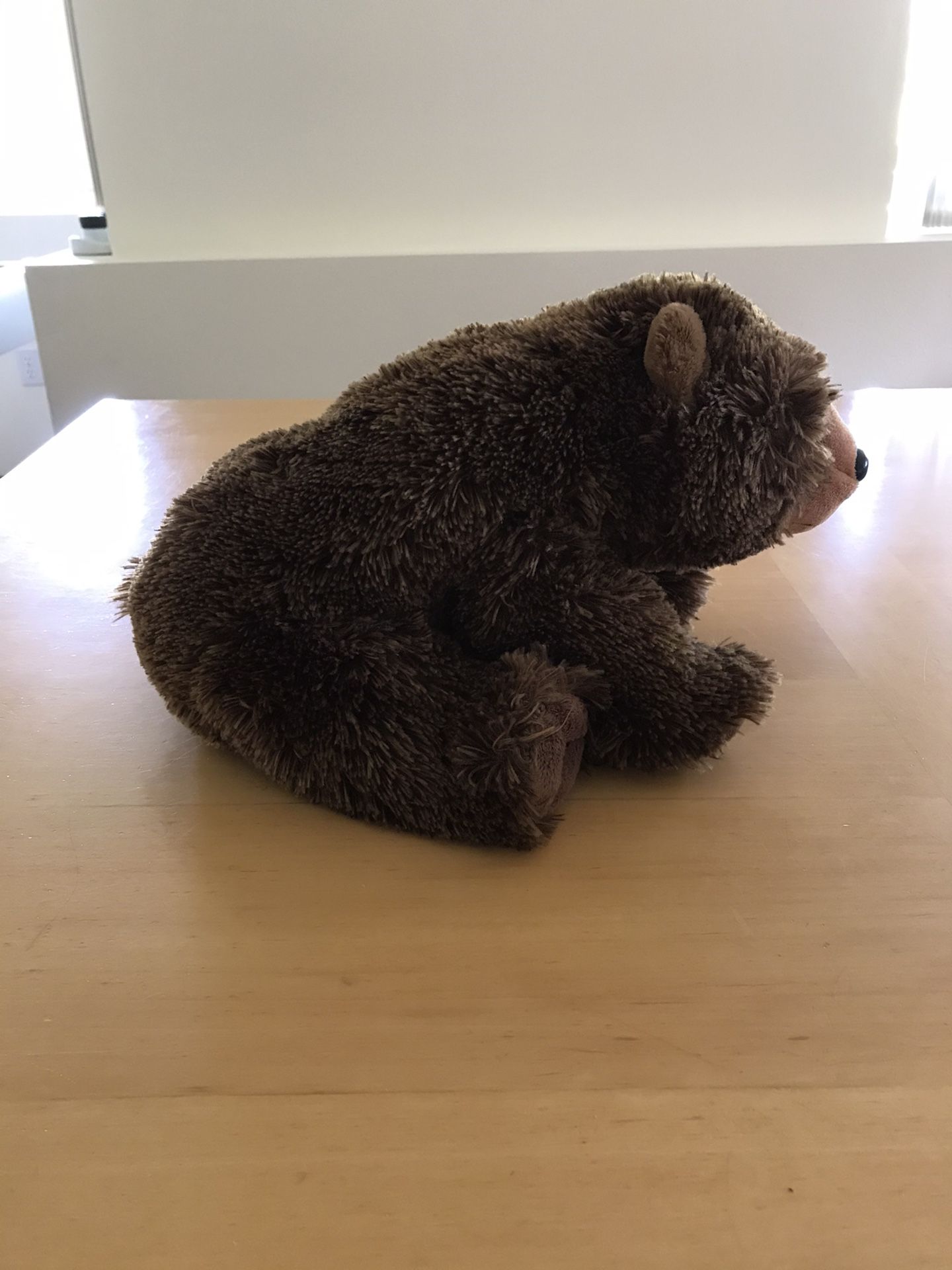 Brown Bear plushy - soft and cuddly bear. About 9” tall and 13” long this cute bear has lived in a non-smoking, no pet home his whole life (since being purchased from the Pacific Science Museum. Collect Gig Harbor.