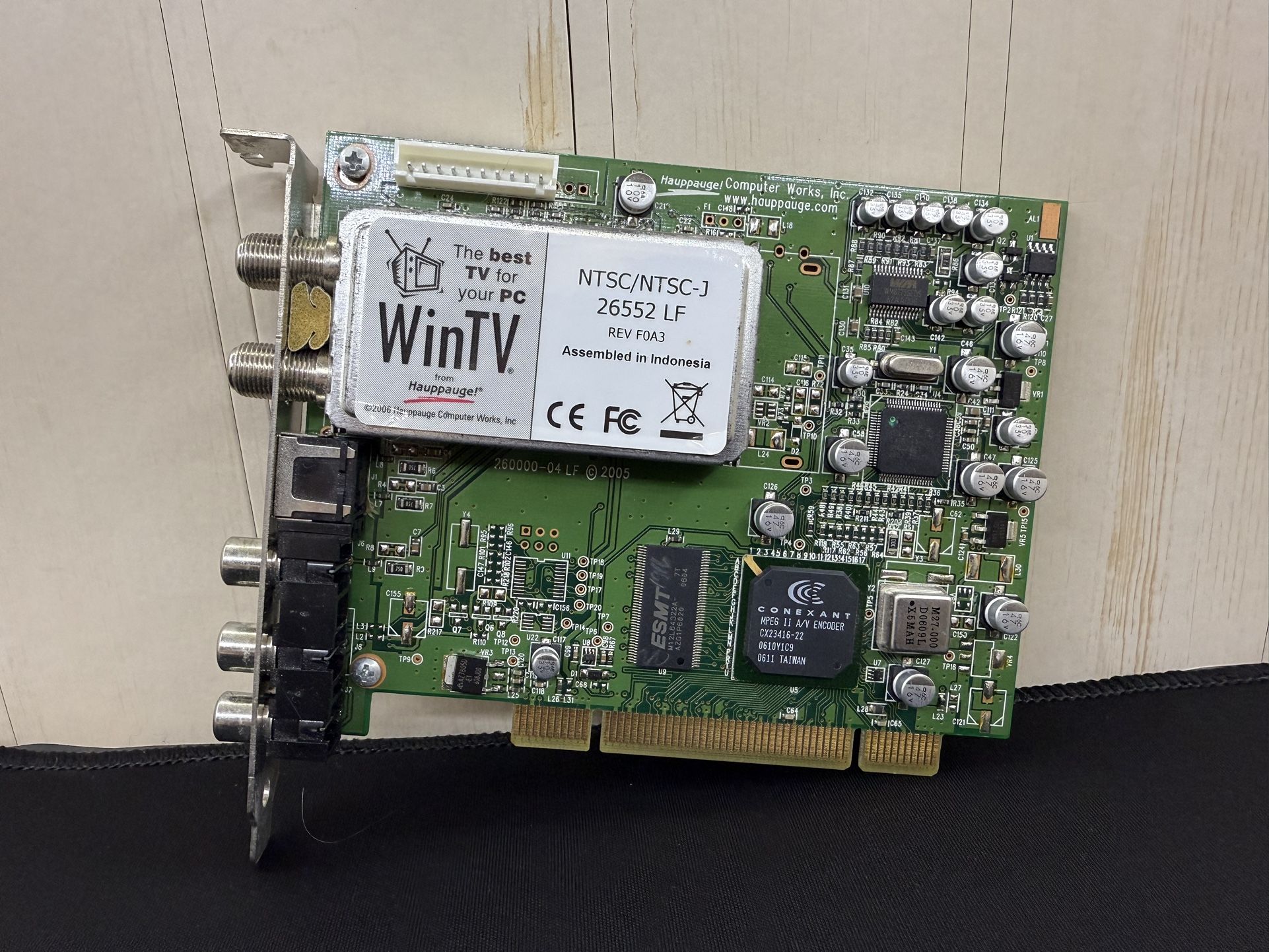 HAUPPAUGE WinTV PVR-150 Model 26552 LF Revision F0A3 Untested. Supports NTSC/NTSC-J PCI Interface. Please carefully review photos for details on condition. Please message me if there are any questions or additional information needed before you buy. I attempt to thoroughly research all items, but may occasionally miss something. Questions are welcome and answered promptly. Shipping costs are out of my control, and based on size, weight, distance and method of shipping. I attempt to select the most cost effective shipping method, which may not be the fastest. If you wish to have your item faster, please indicate this when buying.