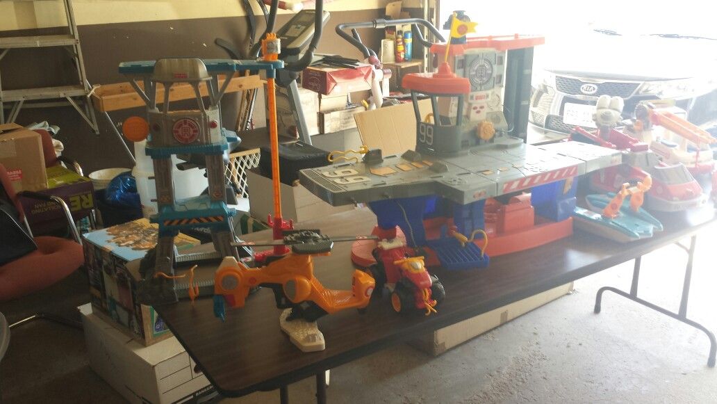 Entire classic rescue heroes. Everythjng pictured, many vehicles, accessories, over 20 figurines. $135.00 for everything o.b.o.