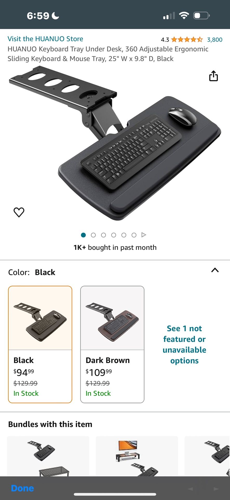 Huanuo Keyboard Tray Under Desk, 360 Adjustable Ergonomic Sliding Keyboard & Mouse Tray, 25" W x 9.8" D, Black NewProduct Link*Retail Price: $ 94.99 https://offerup.com/redirect/?o=aHR0cHM6Ly93d3cuYW1hem9uLmNvbS9kcC9CMDgyTktCTTYy