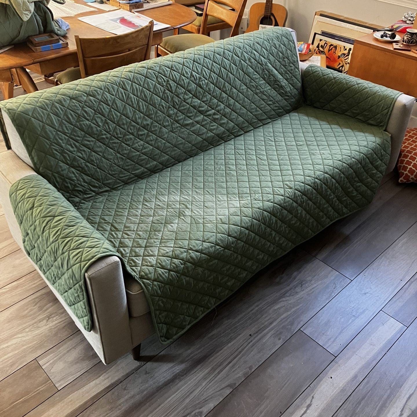 62” long, not including arm covers Reversible; green on one side, tan on the other. https://offerup.com/redirect/?o=aHR0cHM6Ly9zbWlsZS5hbWF6b24uY29tL2dwL2J1eWFnYWluL3JlZj1wcHhfeW9fZHRfYl9iaWE/aWU9VVRGOCZhdHM9ZXlKamRYTjBiMjFsY2tsa0lqb2lRVVJVVkU1R05reE1PVXhSU2lJc0ltVjRjR3hwWTJsMFEyRnVaR2xrWVhSbGN5STZJa0l3TjBoUyUwQU16STFXRVFpZlElM0QlM0QlMEE=