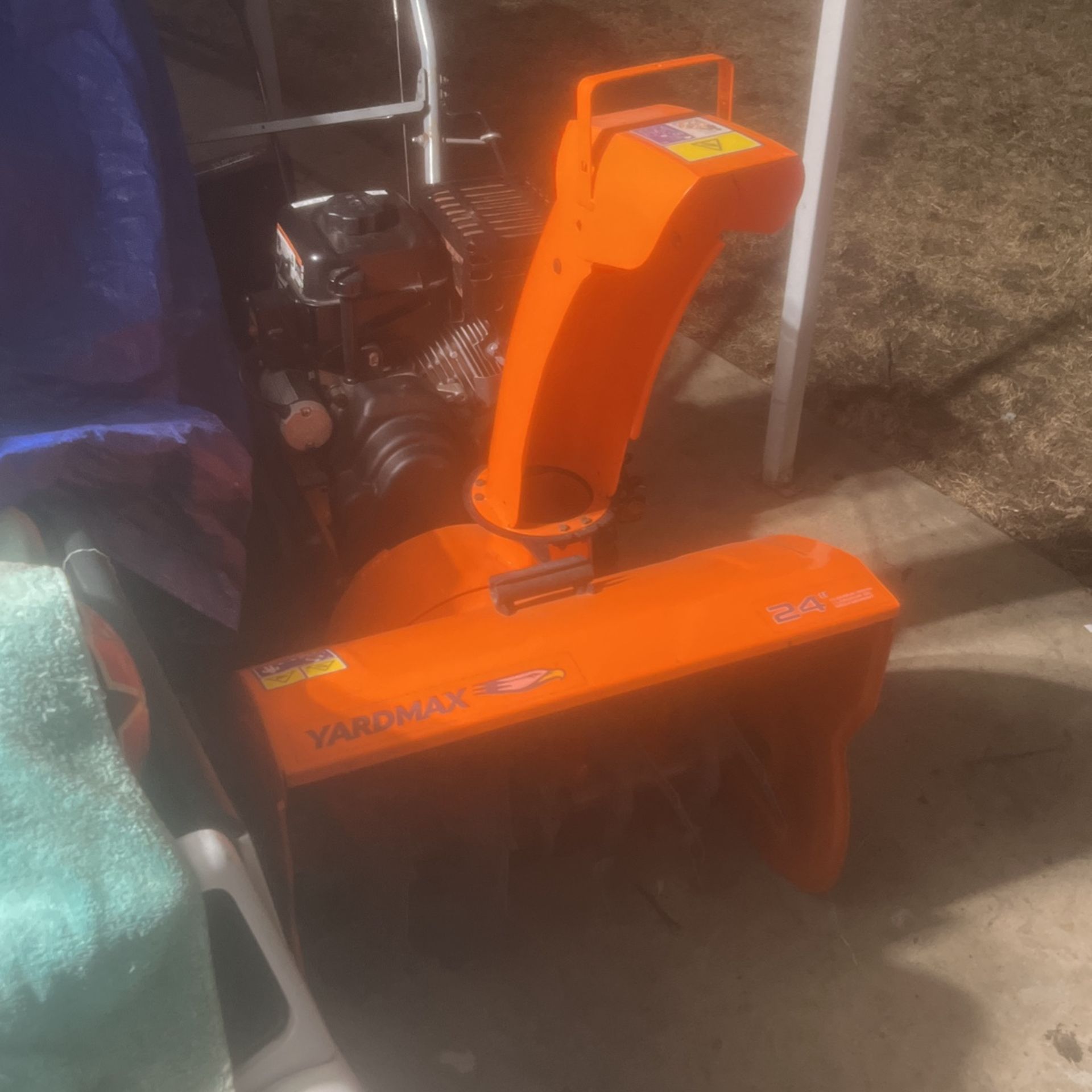 used once basically brand new yard max 24" snower blower self propelled push button electric start.retails for 600$ brand new will deliver for a fee