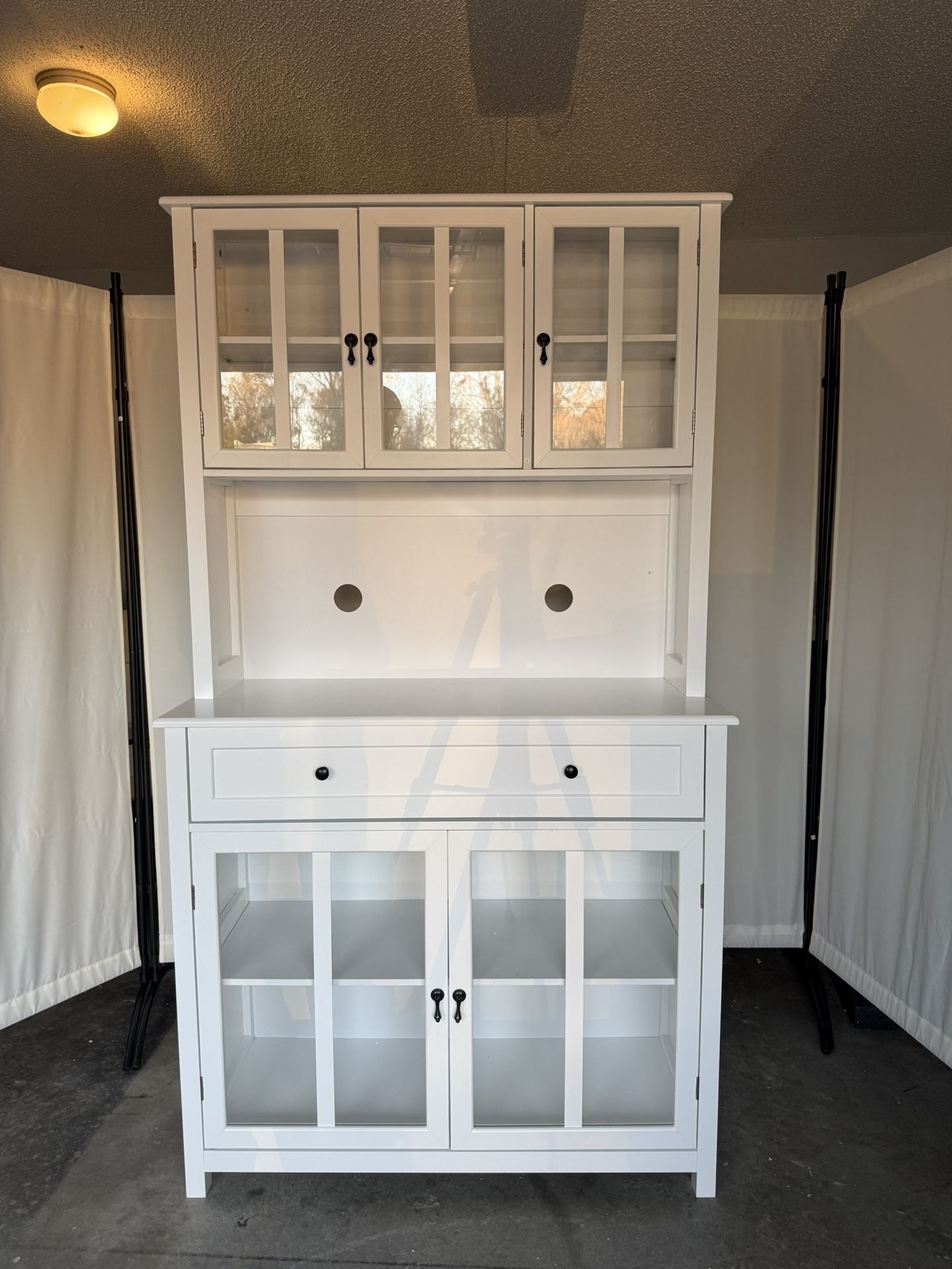 🔥BEAUTIFUL 71” PANTRY CABINET!🔥 Freestanding Hutch w/ Shelves & Glass Doors
