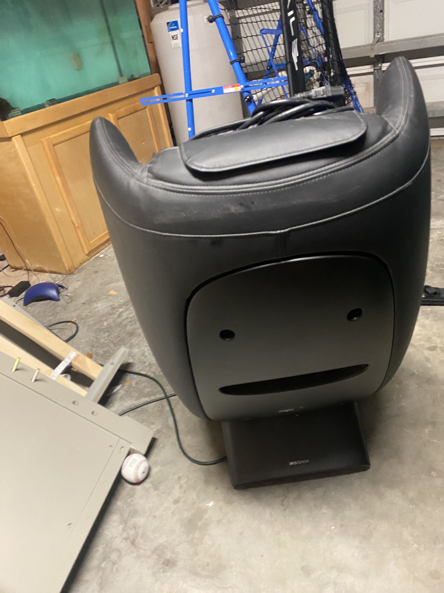 Excellent condition black comfy massage chair works wonderful. Bought a bigger one have no room for both.