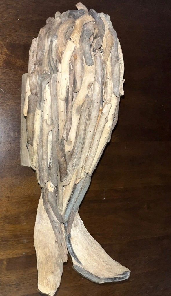 Large Natural Driftwood Organic Whale Sculpture on Stand
