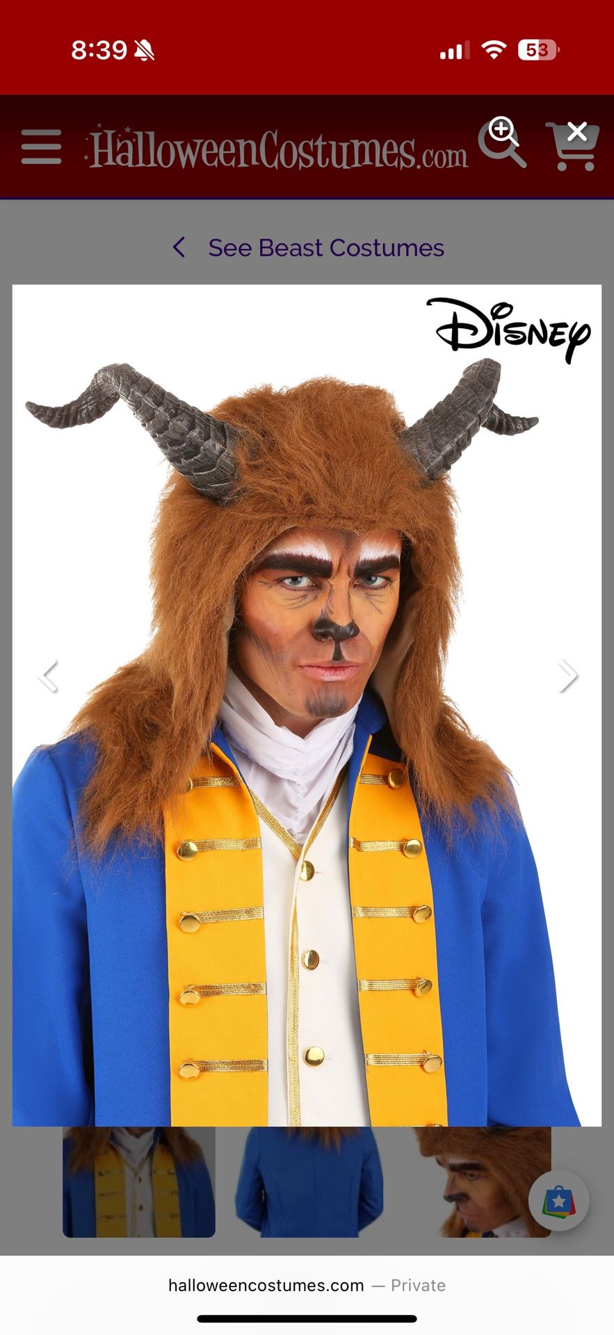 Disney Beast Costume Hood with Horns Accessory