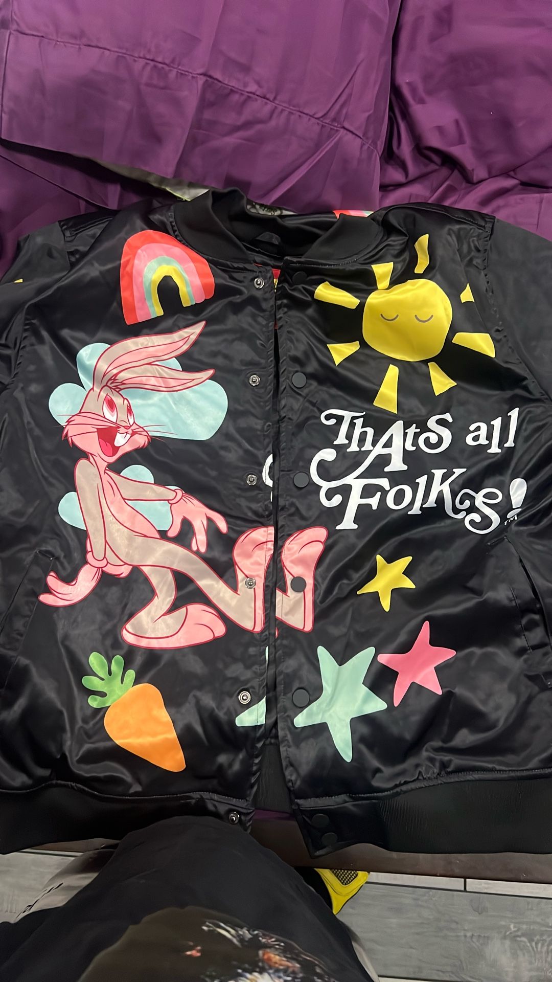 New men’s looney tunes jacket size 3xl asking 30$ obo willing to trade for iPhone iPad or Apple Watch or MacBook Pro or dewalt or supreme or Nike or Jordan or alpine or gshock or Milwaukee not free feel free to offer up whatever you like not free