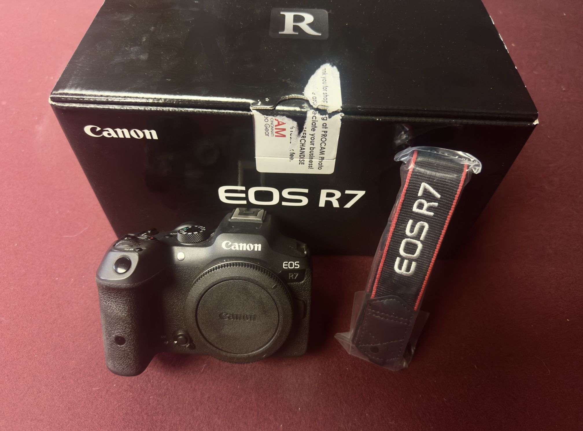 Very very good condition R7. I only shot in electronic shutter. Great camera not only for wildlife but indoors as well (depending on your lens) charger and battery included