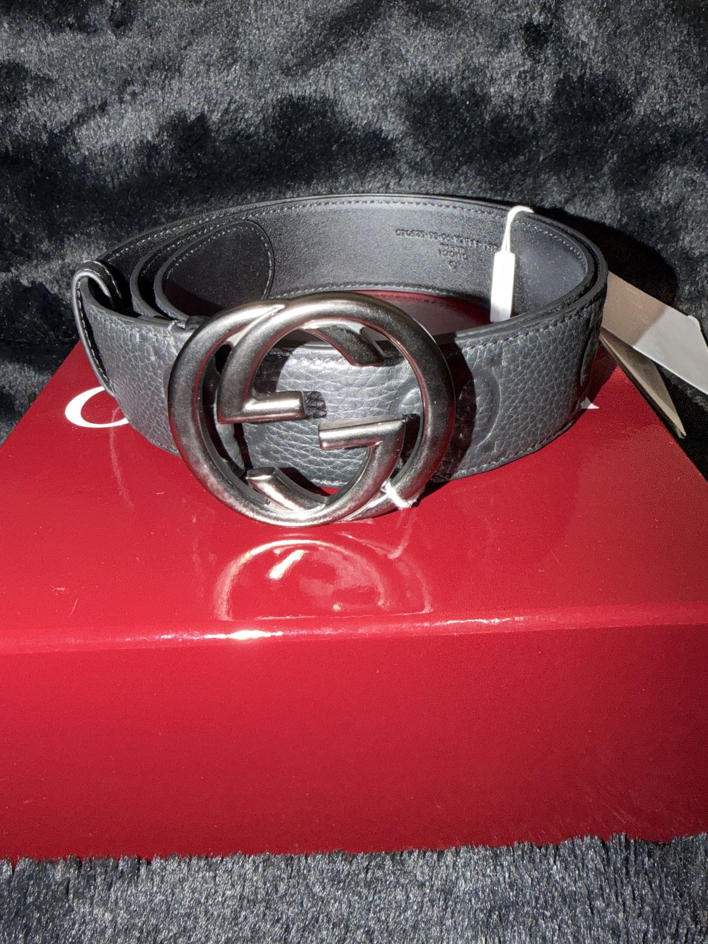 Pick up Temperance/nees Authentic (I have Proof) Gucci Men’s Belt Size 90 (32US) Brand New one with tags and one with out. There to big. No longer fit Black with tag $620 Blue w/o tag $580 No Trades