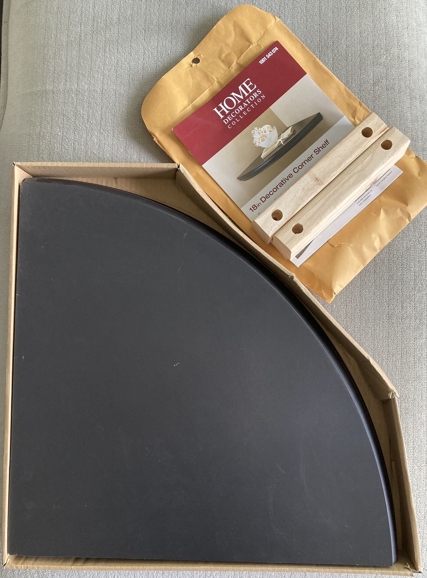 Brand new 18 inch corner shelf in black with all hardware and instructions $15 meet up for exchange only