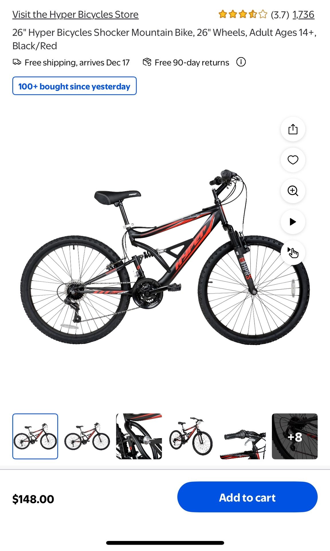26" Hyper Bicycles Shocker Mountain Bike, 26" Wheels