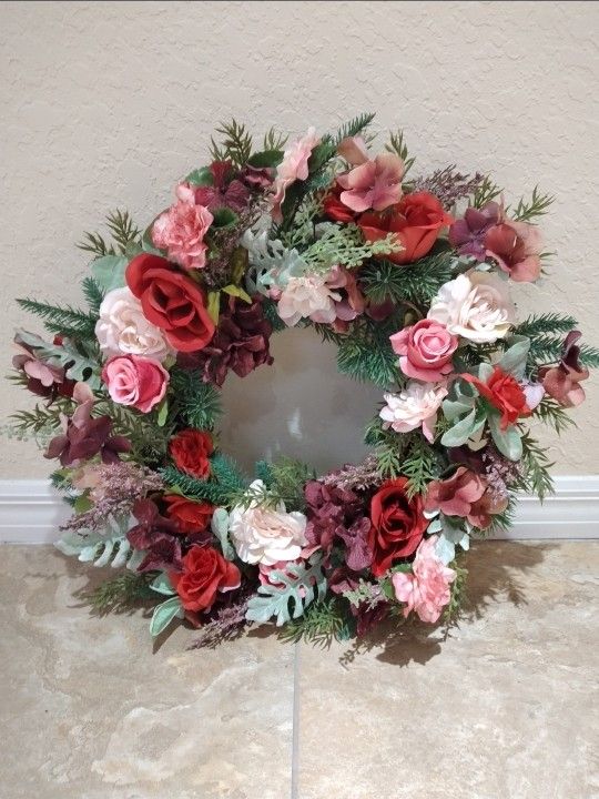 Used Roses Wreath Decor 17inch / Corona de Rosas para decoración 17 Pulgadas