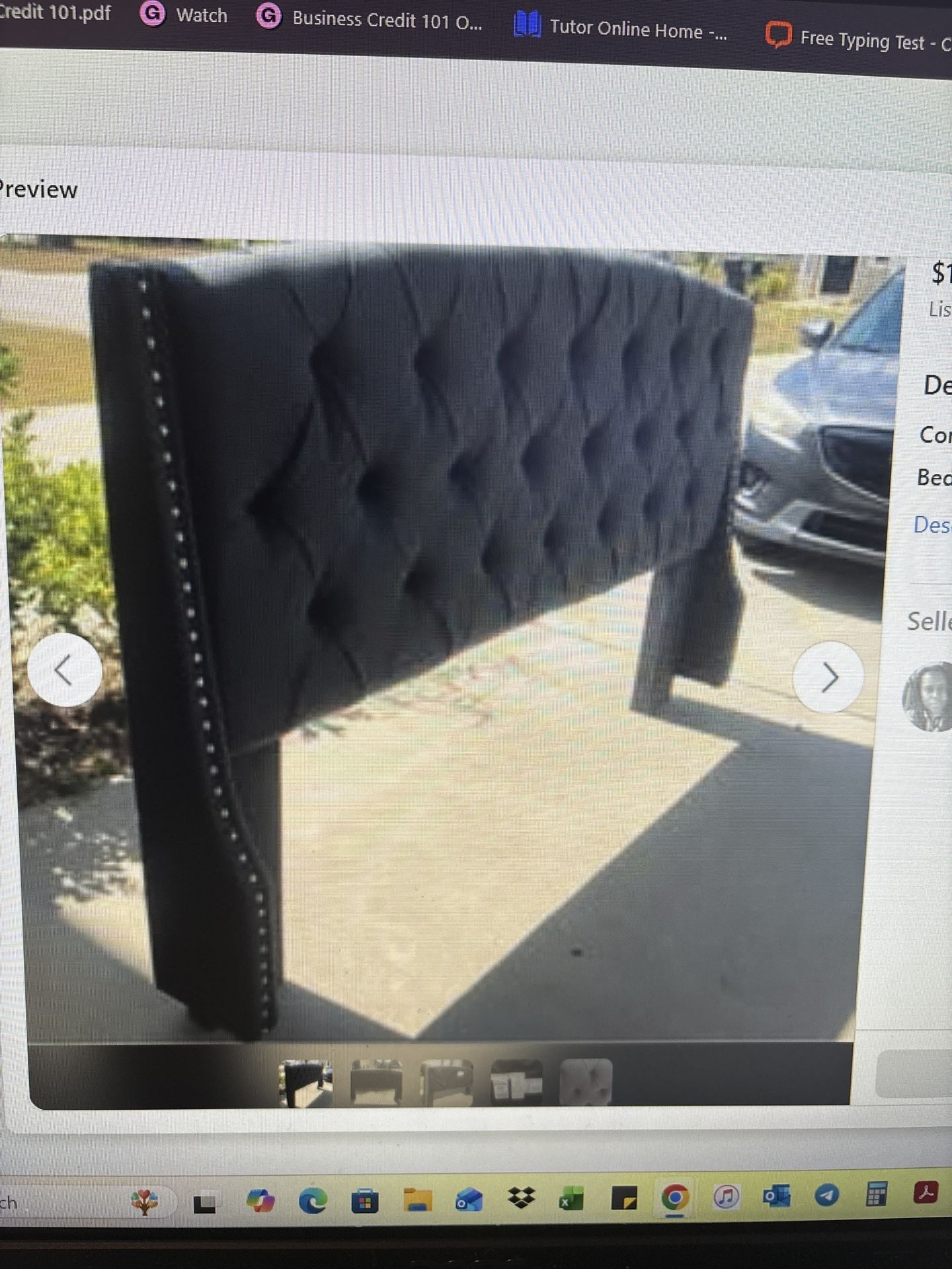 Bluish-gray tufted king headboard with nail head trim. Very study, clean and in great shape. Pickup only.