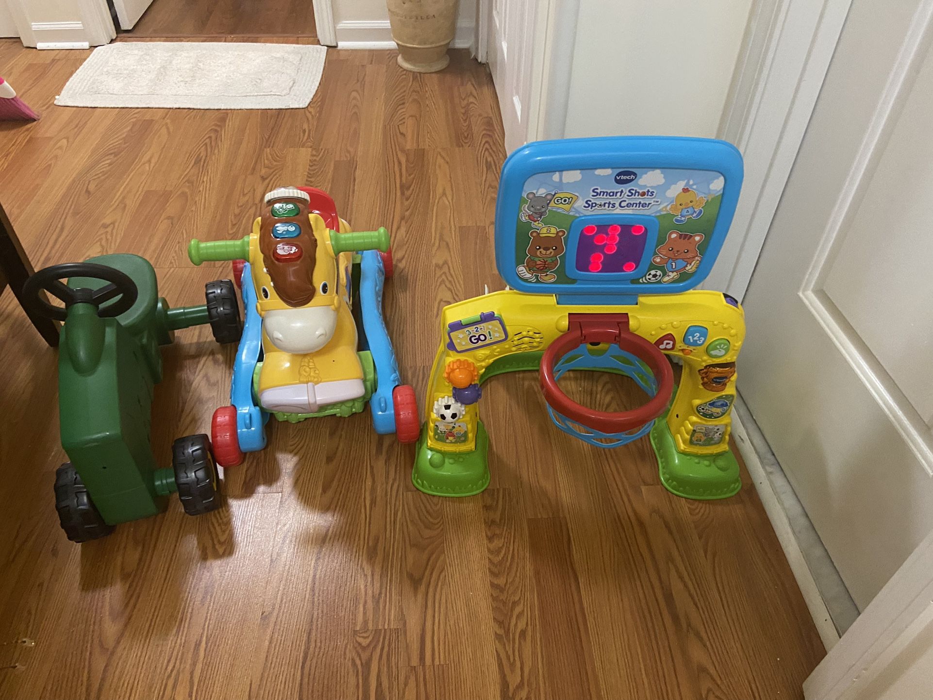 Great toys for kids. All 3 for $15–or $10 for the Vtech basketball set that lights up and $6 each for the other items.