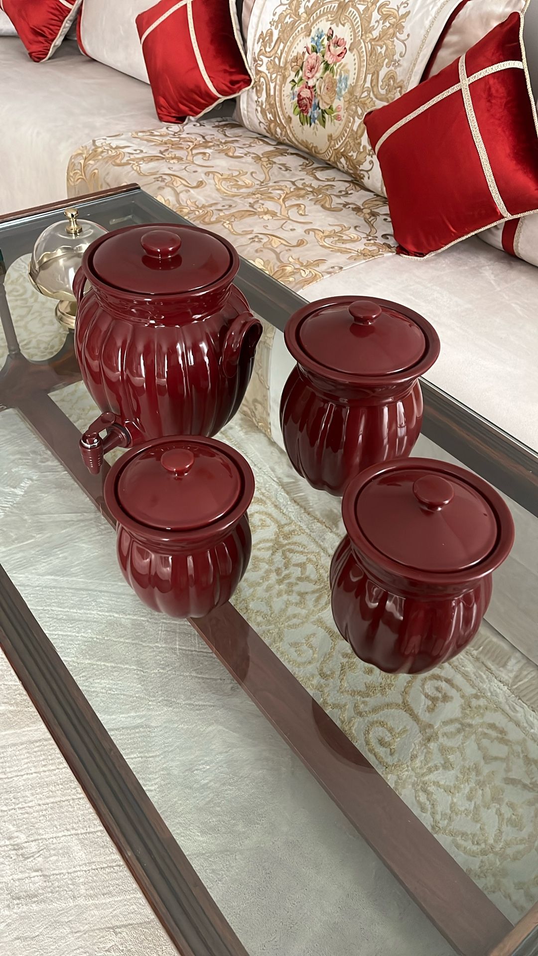 Celebrating Home Berry Stoneware 4 Piece Kitchen Canister Set & Beverage Dispenser With Lids & Stands