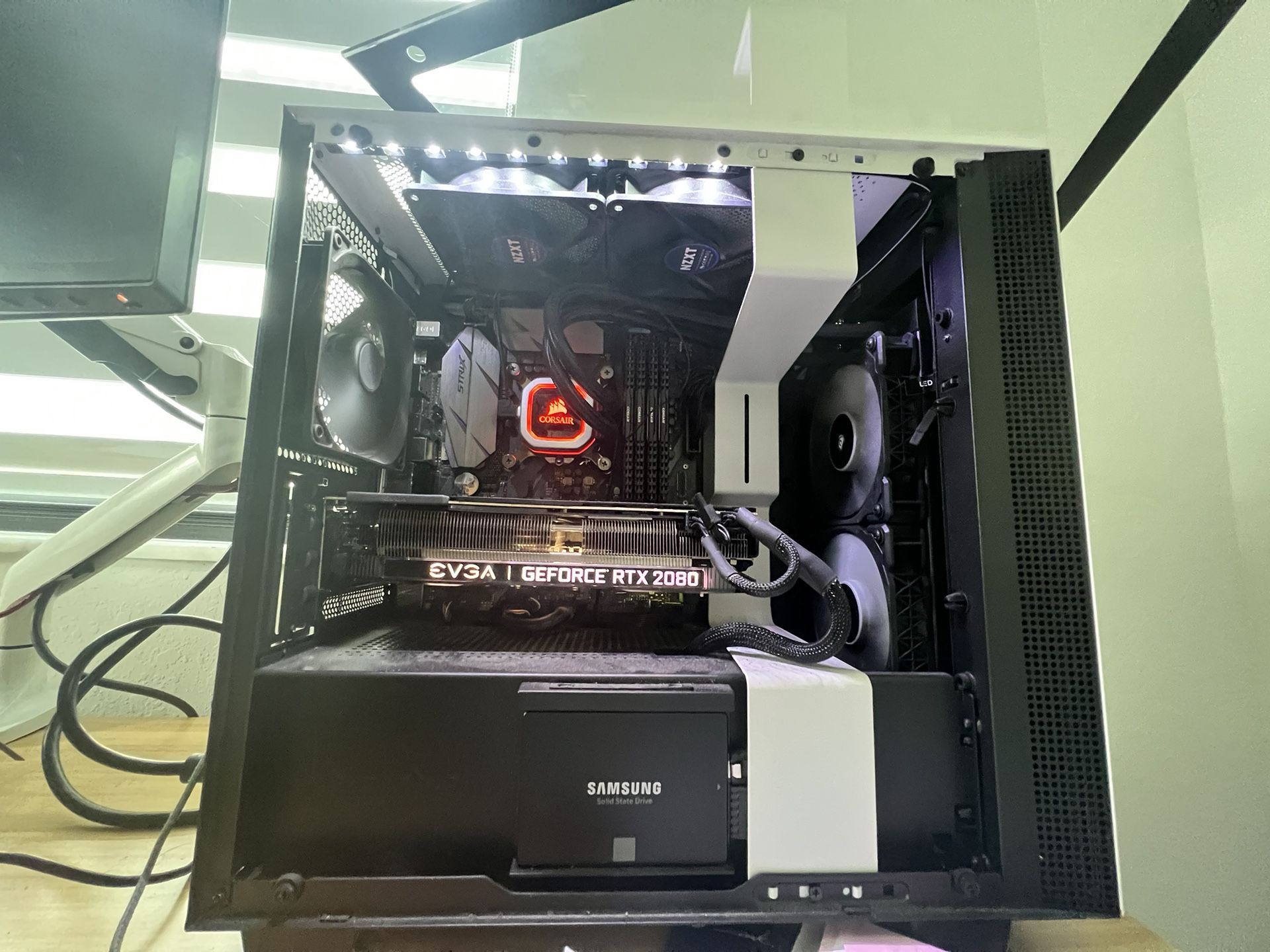 Custom built I7 coffee lake custom PC for sale with a 2080 Super GPU. 32Gb ram 3TB storage. Wiring tucked away. Liquid cooling CPU Price is firm. This is all premium parts, not a economy giant corporate rig.