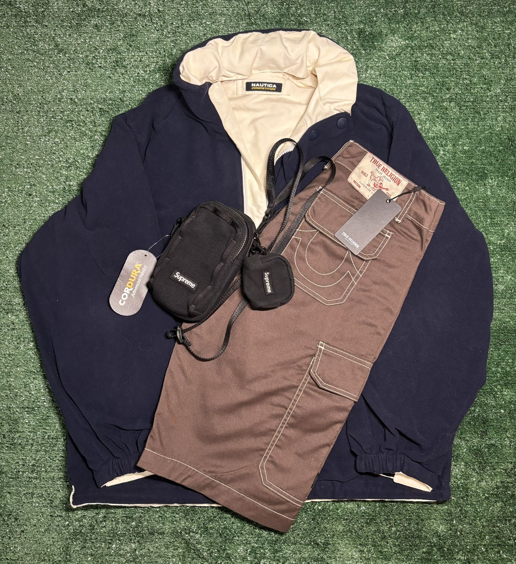 Cream and blue Nautica windbreaker jacket with hood jacket vintage Price:$65 or OBO Size: Medium