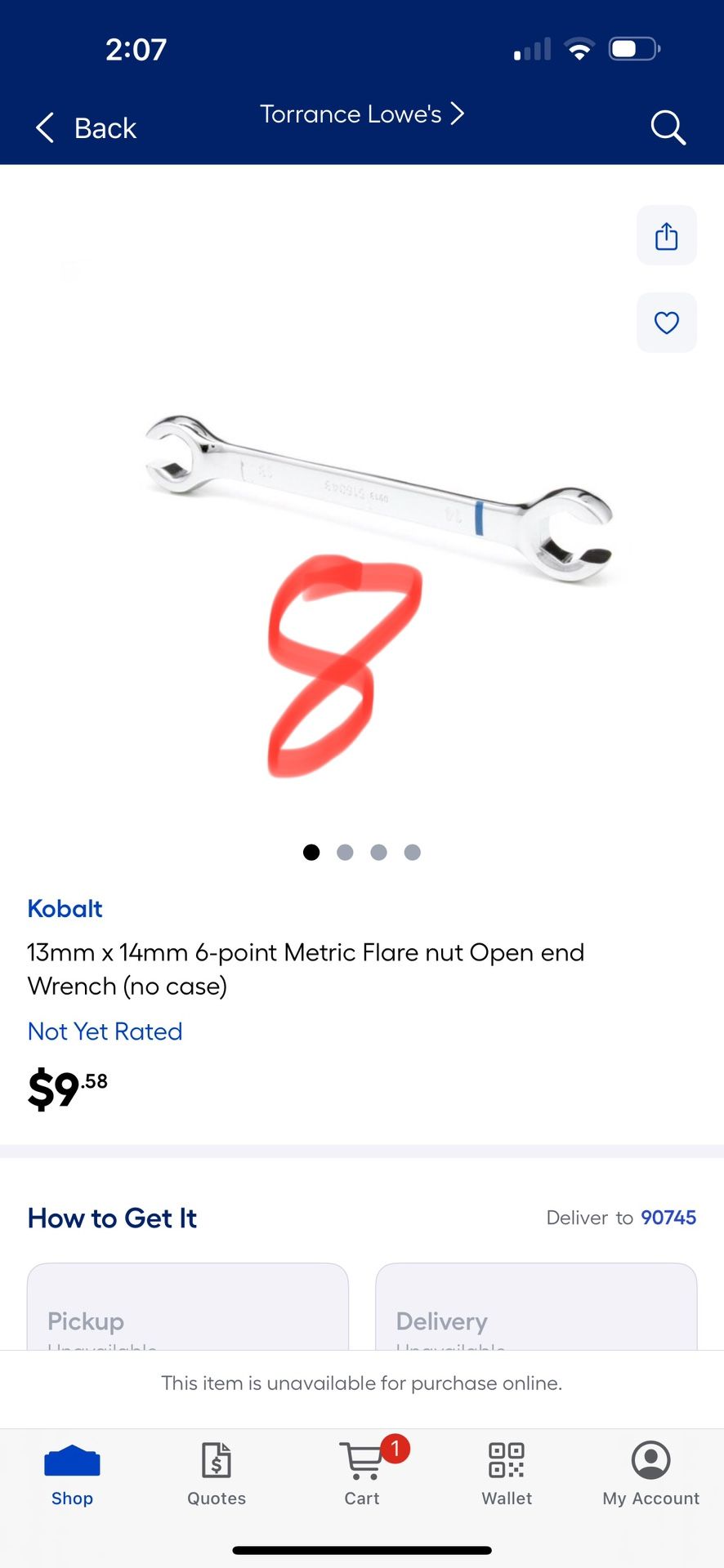 Kobalt 13mm x 14mm 6-point Metric Flare nut Open end Wrench (no case)
