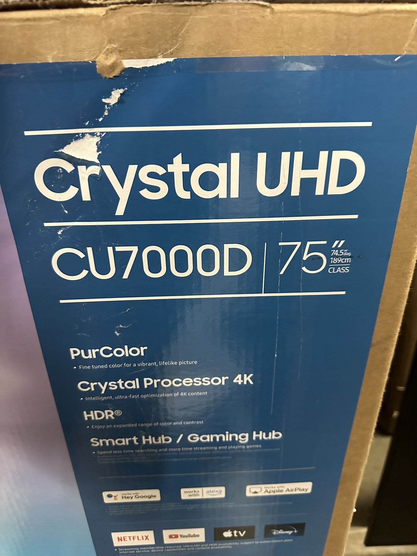 SAMSUNG 75-Inch Class Crystal UHD CU7000 Series PurColor, Object Tracking Sound Lite, Q-Symphony, 4K Upscaling, HDR, Gaming Hub, Smart TV with Alexa B
