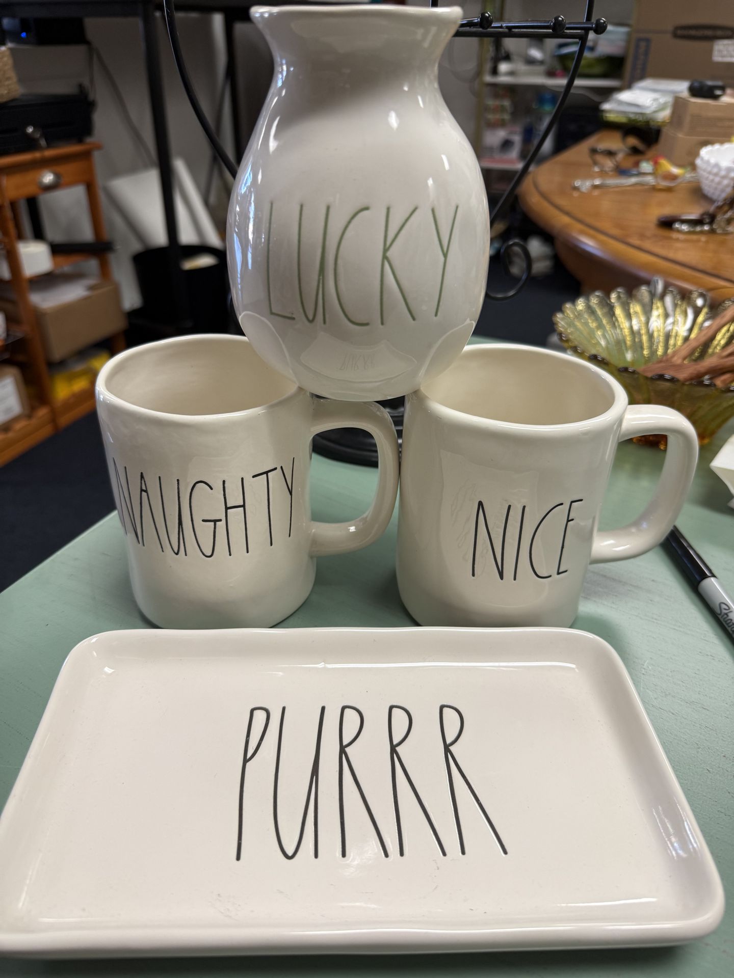 Naughty and nice mugs Purr rectangle plate Lucky vase