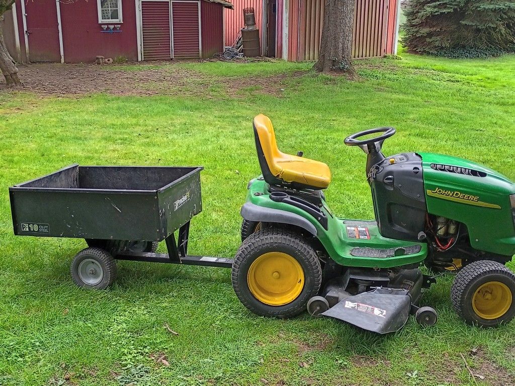 Jhon Deere Riding Mower with Kohler L130 V Twin 23hp. 48 inch mower blades! New mower belt. And Rather low hours. Always cared for, recent oil change in great shape! Reach me at. Three six0)six07-8one 4seven $450 for riding mower $500 for both trailer and mower