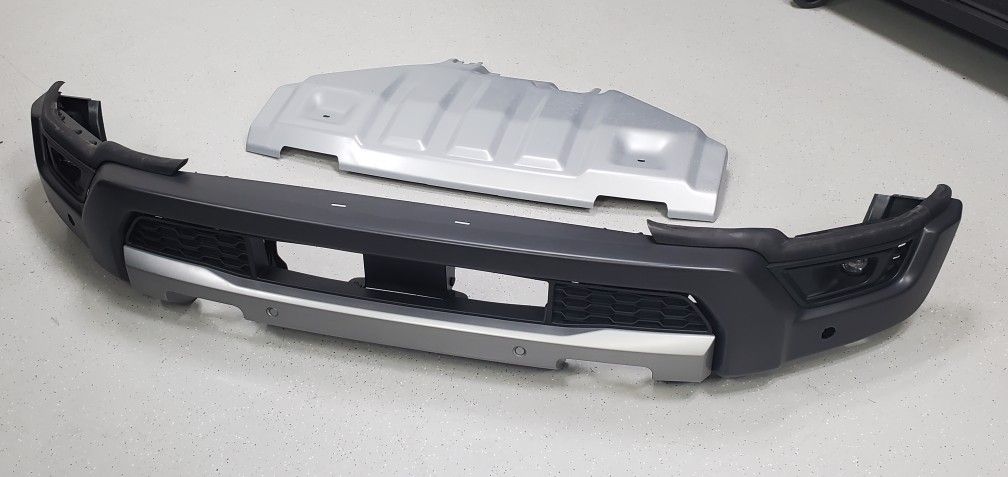 This is a new take off with only 28 miles on the truck. Not a scratch. I just went with an aftermarket bumper. You get the bumper, lower valance and skid plate. The bumper has the factory fog lights. The lower valance has the parking sensors. You get everything shown. In Phoenix near 24th Street and Southern What you don't get: Wiring Harness ACC Module Outer Parking sensors.