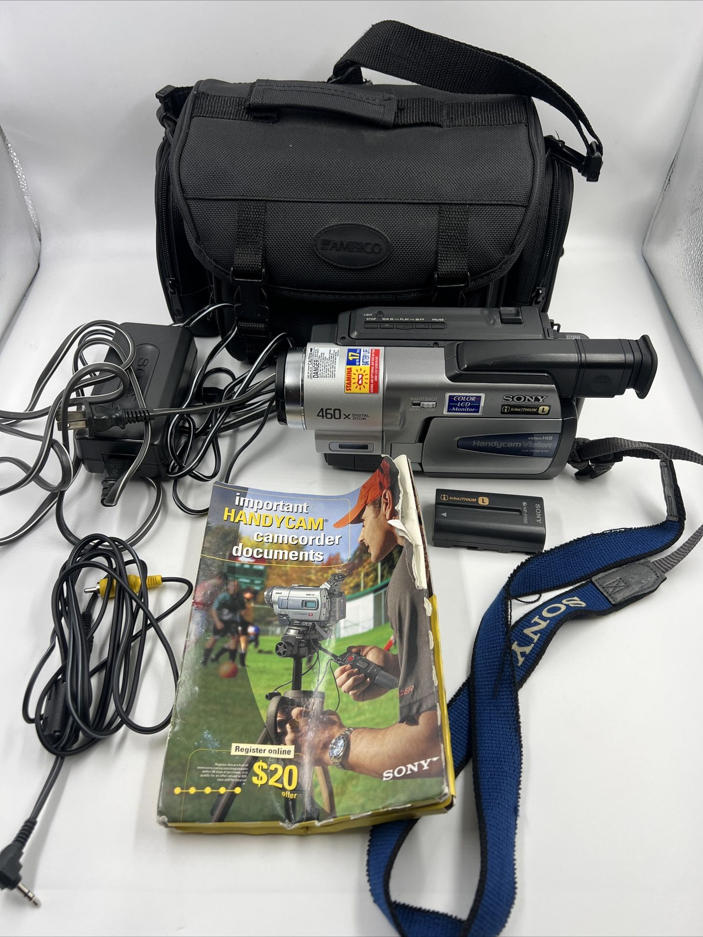 Sony Handycam CCD-TRV58 Hi8 Camcorder W/ Charger 2 Batteries/ Cables/ Bag Works