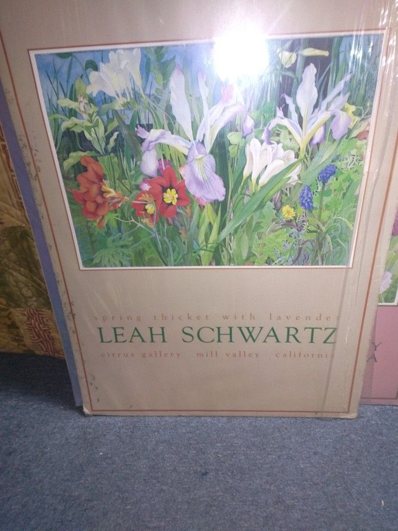 This is a vintage poster titled "Spring Thicket with Lavender" by artist Leah Schwartz.