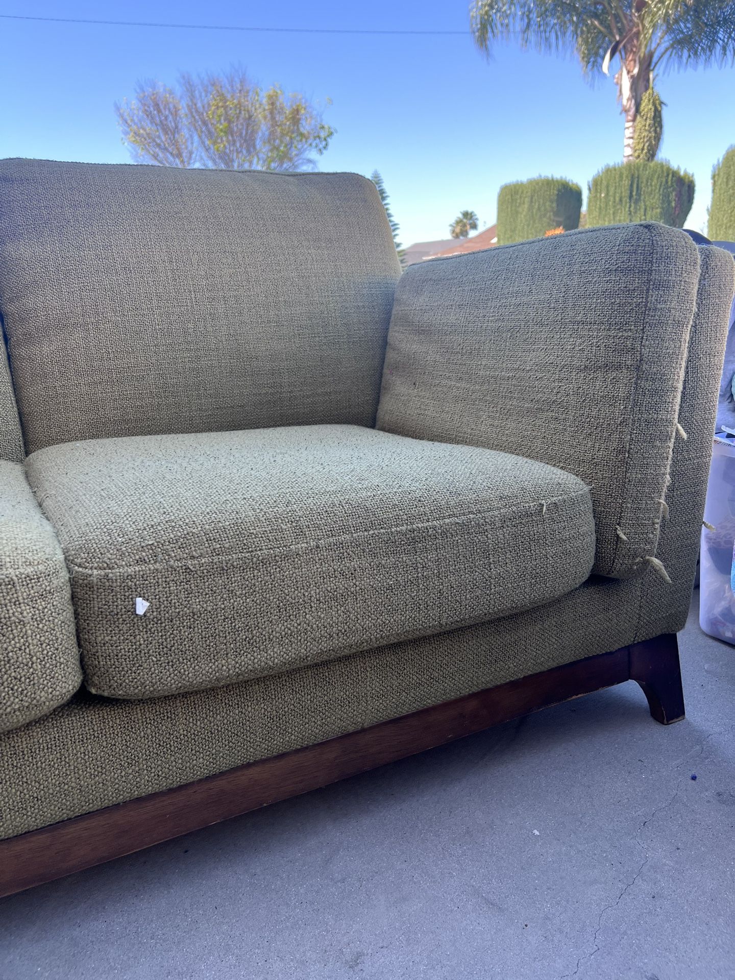 Mid century love seat Perfect for studio or small space Sits low Needs some TLC but it still has a lot of life in it Pick up only Hablo español