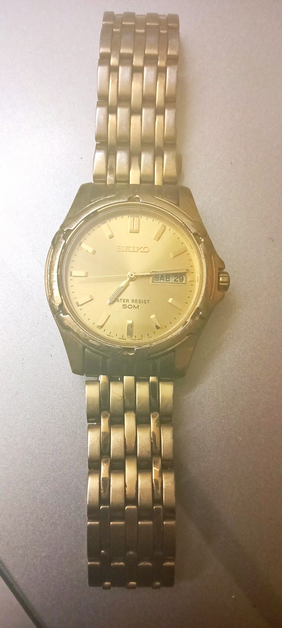 I have a Seiko Men's Gold Plated Day Date Quartz Watch for sale. Works great just needs battery. I need the extra cash for bills so I need to get rid of it. Must pick up and cash only thank