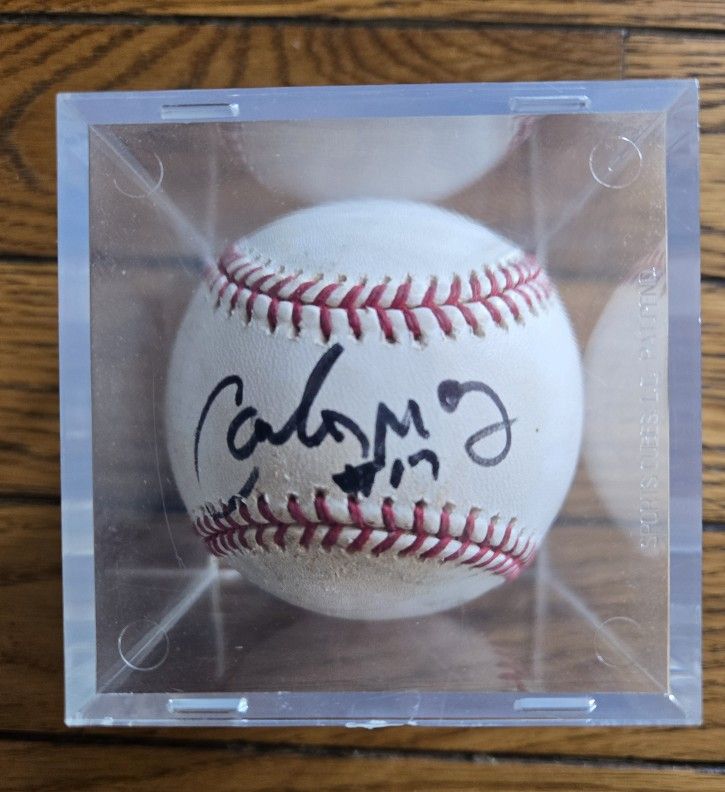 Autographed Carlos May #17 baseball. - Autographed on Rawlings Official Major League Baseball. - Carlos May wore the number 17 shirt and is the only baseball player to have his last name, month, and month date/number on his baseball uniform. Carlos was born on May 17, 1948. - Carlos May played most of his career with the Chicago Whitesox. - Carlos May statistics: Batted Left, Throws Right, 4,120 At Bats (AB), 1,127 Hits, 90 Homer's with a lifetime Batting Average of .274. - Cash sale only, please. If this autographed Major League baseball is listed, then it is available.