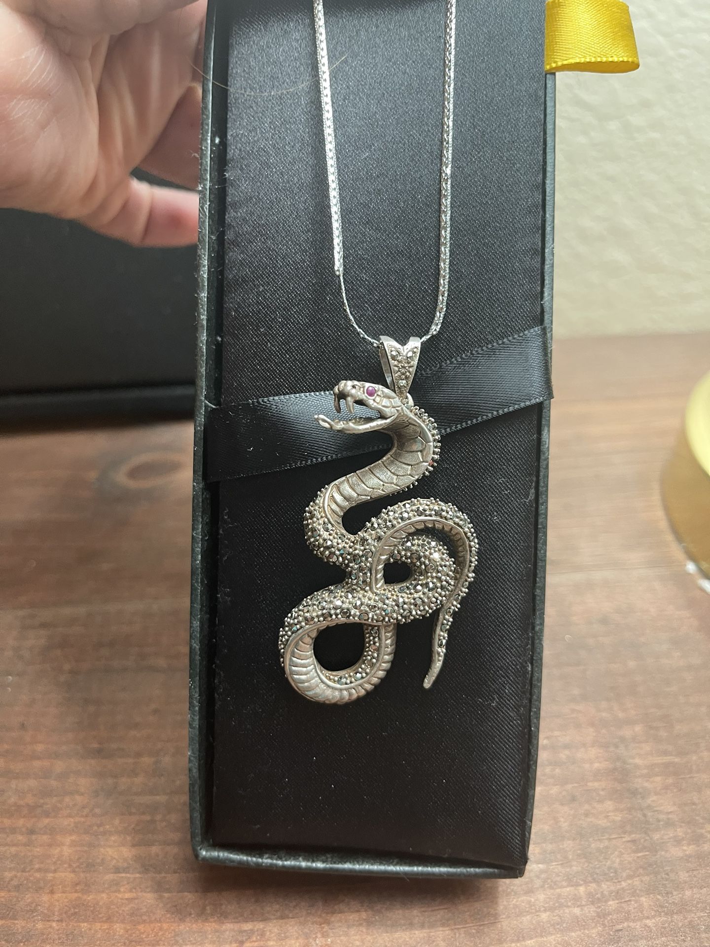 925 sterling silver gorgeous pendant embellished with marcaste , height :60mm , necklace 17’ , wide 2