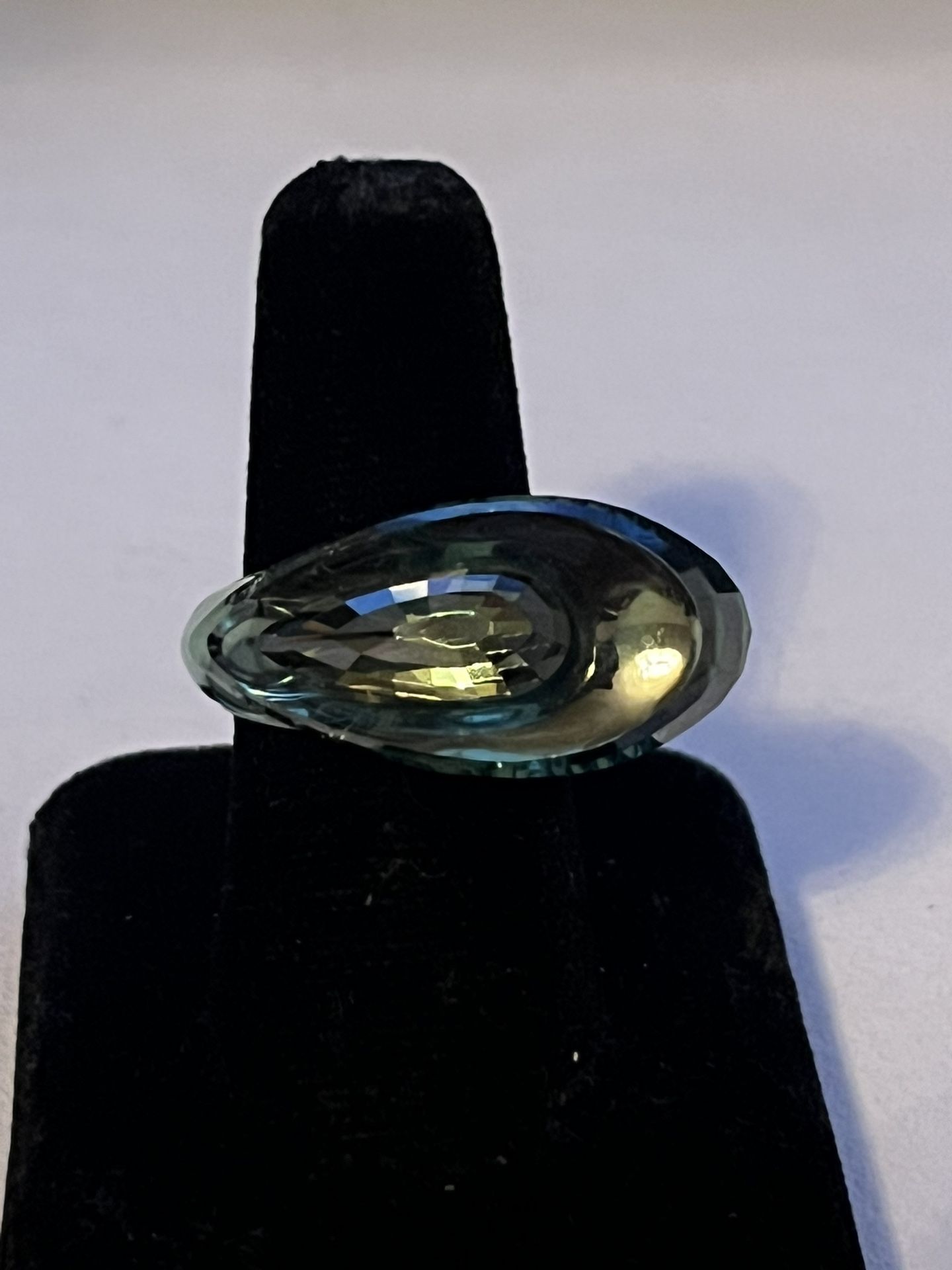 Authentic Swarovski statement ring double tear drop In dark ocean blue color Size 7, stamped 55 with swan design In great new condition no tags