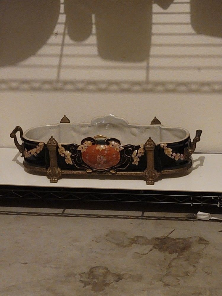 Castilian Porcelain And Brass Footed Serving Dish