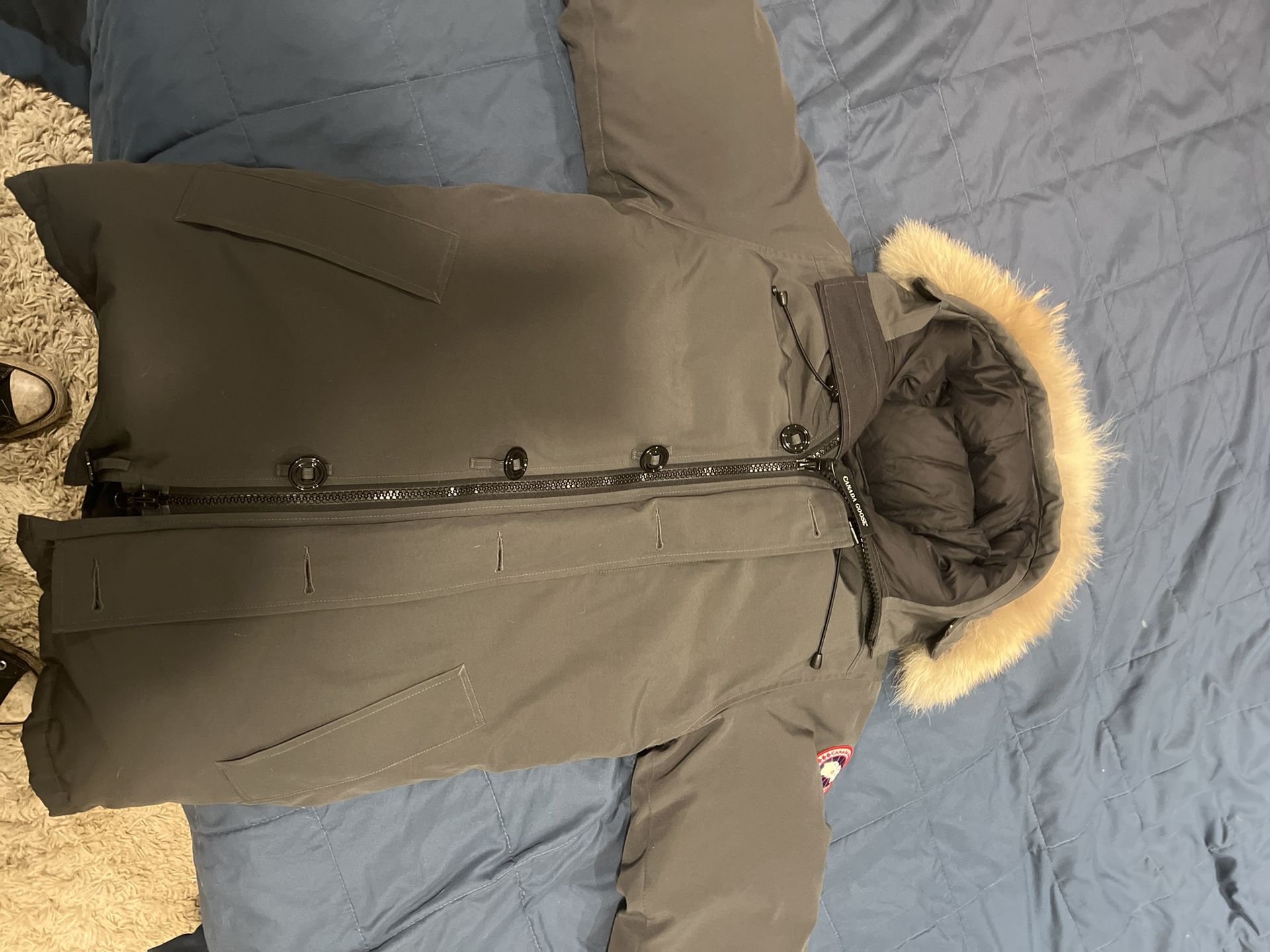 Looking to sell this medium size Canada Goose down jacket. I bought years ago and haven’t worn much. I’m leaving town Friday and it will be available until then. Shoot me an offer and we’ll talk. There is one small blemish on the arm but besides for that it’s in very good condition.
