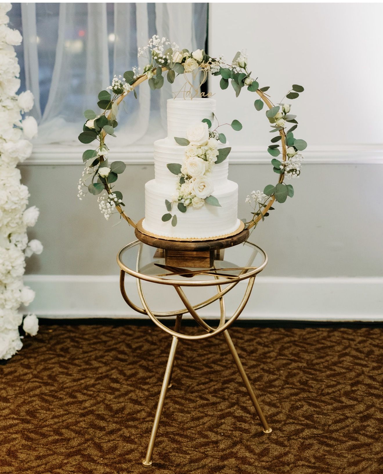 Modern Wedding Cake Stand / Floral Hoop Display – $120