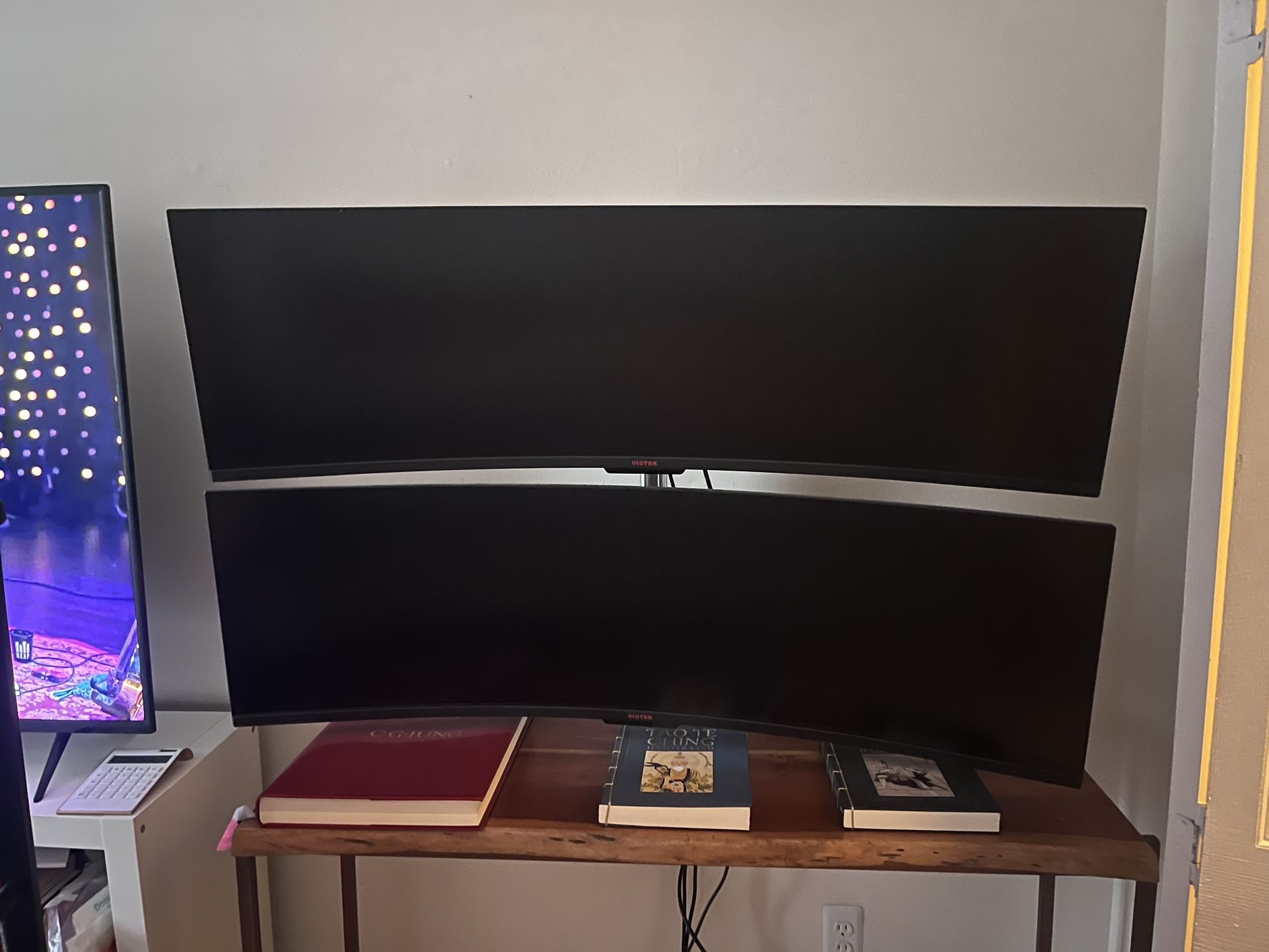 Selling my trading monitors. 2k each or 2k for one. I will include all the cords and connections and remote. I was recently gifted an even larger set up and am preparing to relocate. I don’t want to pack all these monitors so these are for sale with the table and monitor stand included. Originally $2500 per monitor.