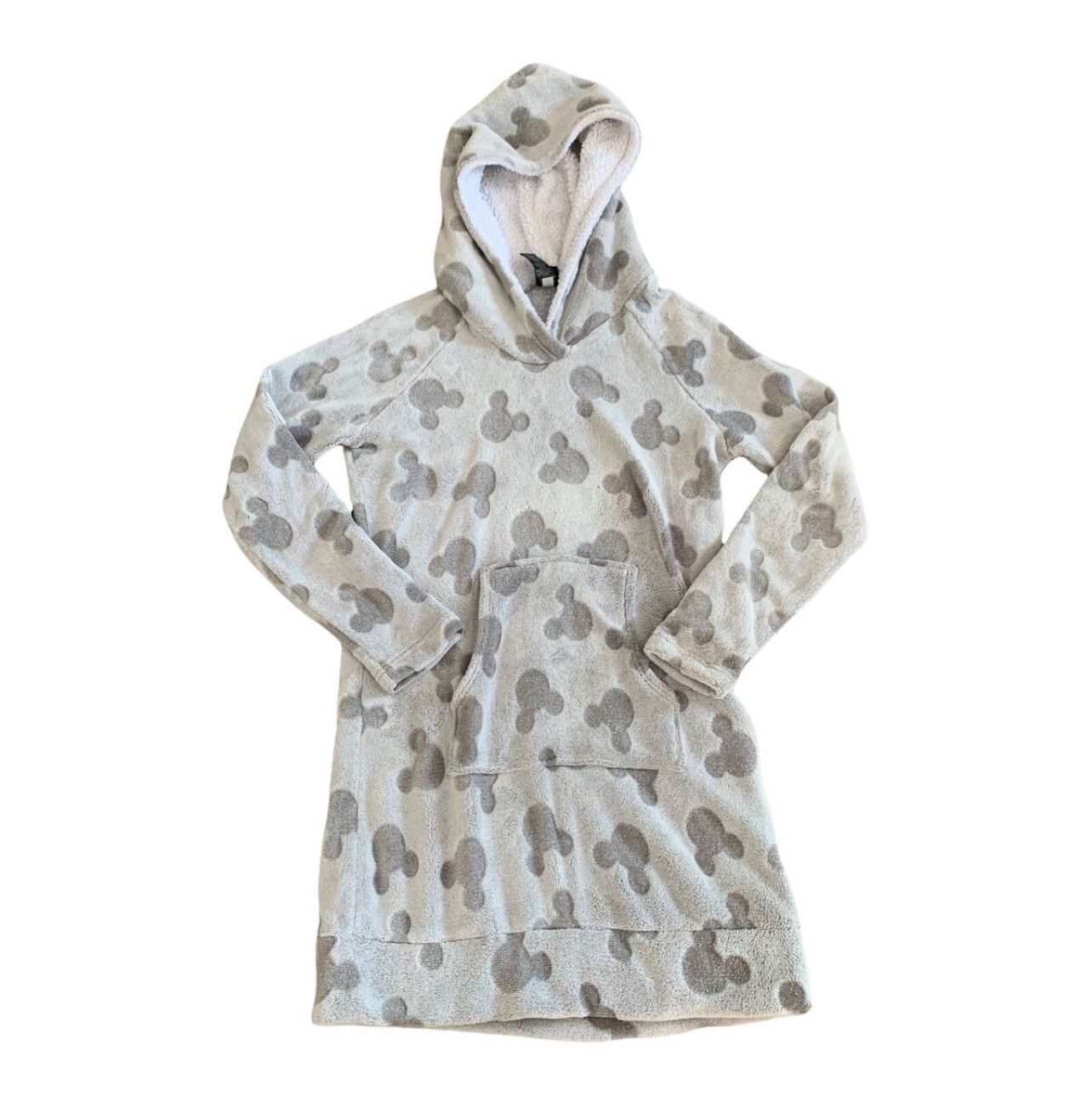 Great used condition Faux fur grey sweatshirt hooded dress tunic Size Medium Super soft & cozy!!