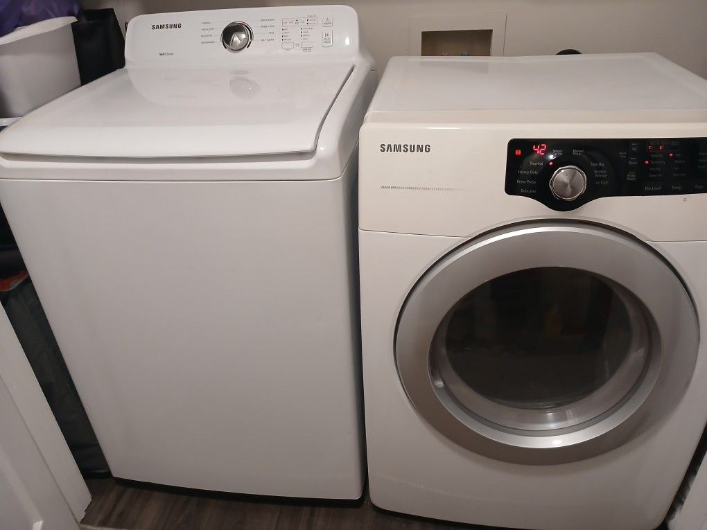 Samsung large capacity self cleaning washer and dryer both in good working condition.