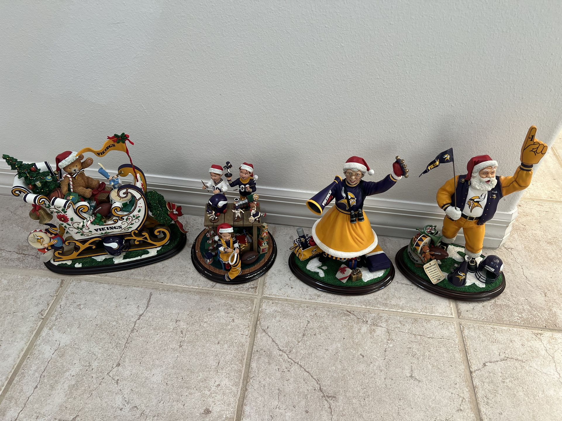 Price for all set. Brand new in boxes. Danbury Mint Minnesota Vikings Santa Claus Christmas Figurine NFL Danbury Mint Minnesota Vikings Mrs. Claus Christmas Figurine NFL RARE 2001 DANBURY MINT BALTIMORE RAVENS CHRISTMAS SLEIGH $60 each or $200 for all 4.