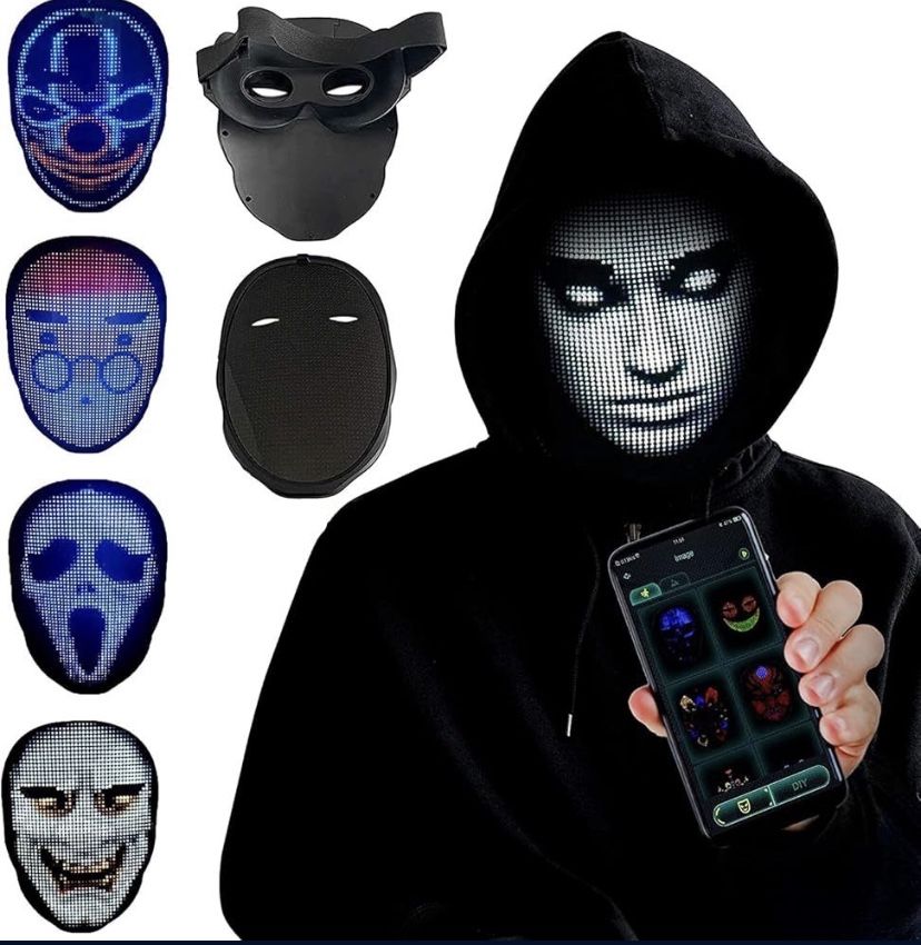 Rechargeable LED Halloween Mask with Bluetooth, Programmable with Shining Mask App, Face Changing Cosplay, Party, Christmas
