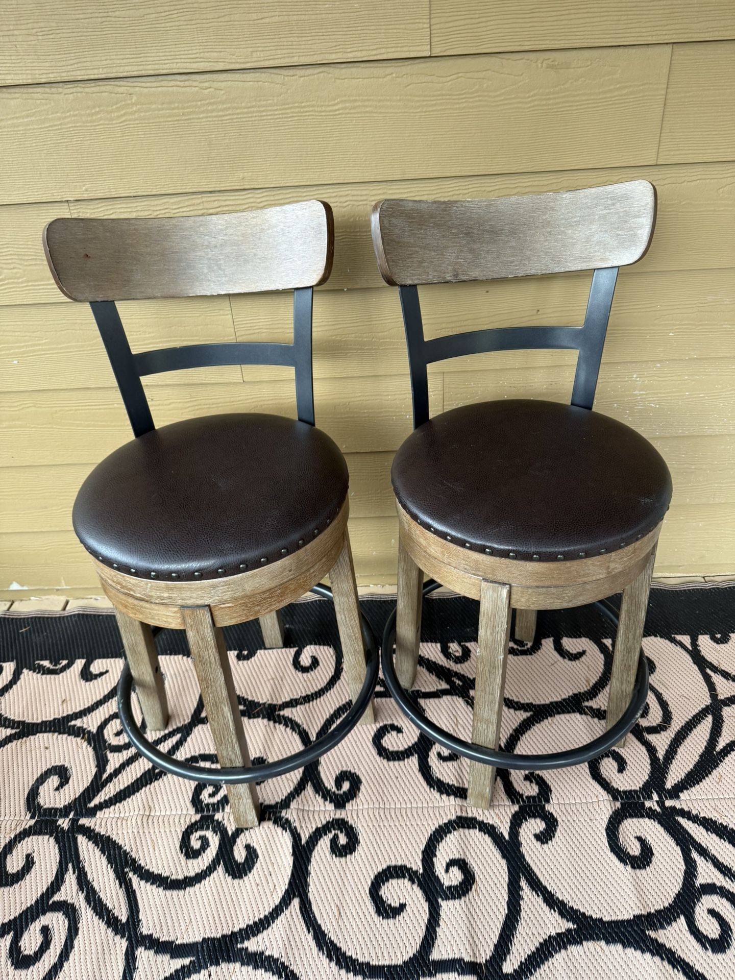 Set of 2 Swivel Bar Stools Industrial Wood Metal Faux Leather Counter Chairs