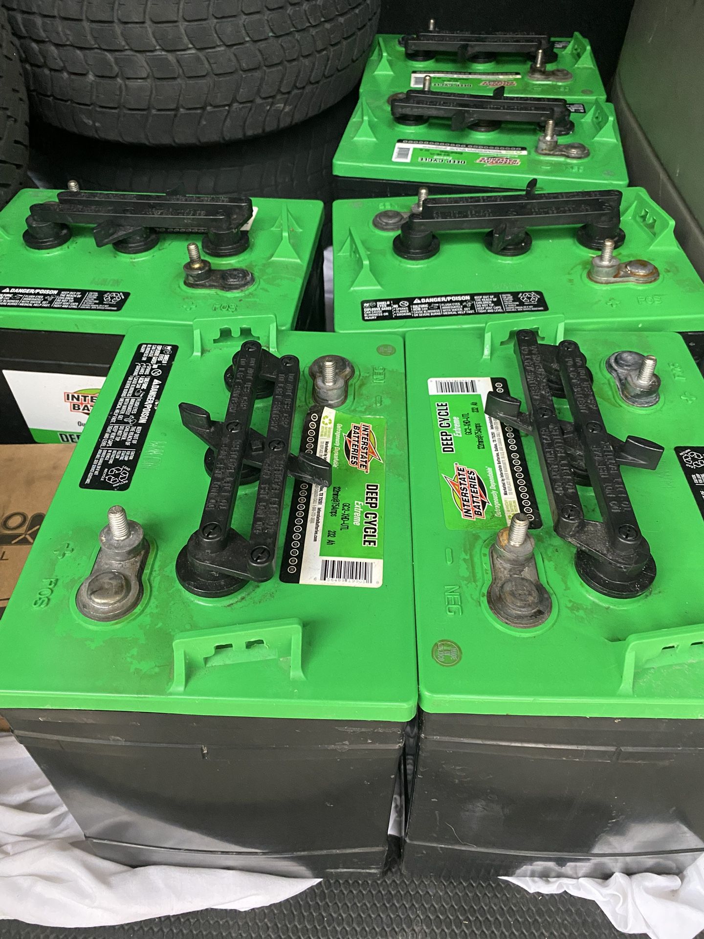 My golf Kart was totaled wile it was parked don’t worry I had taken the batteries out lol so I’m selling these batteries there all charged up and ready to go there a lil dirty but still new these are great batteries there Interstate Deep Cycle Gc2-Xhd-Utl Batteries I only used them for 2 months before taking out . I also have 6 tires and rims .If your interested let me know Have a Blessed Day 😎