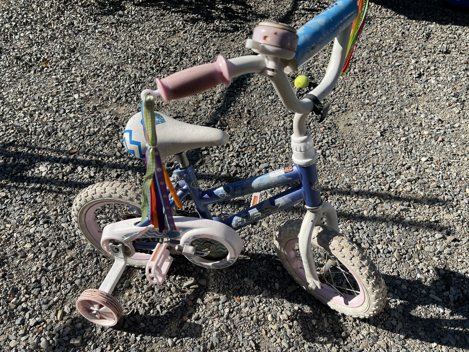12” girls huffy bicycle, great starter bike comes with good tires, chain cover, grips with streamers