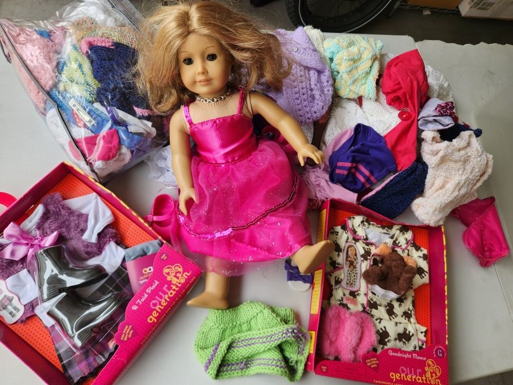 American Girl Doll in good condition with tons of outfits, brush, handmade outfits, etc.