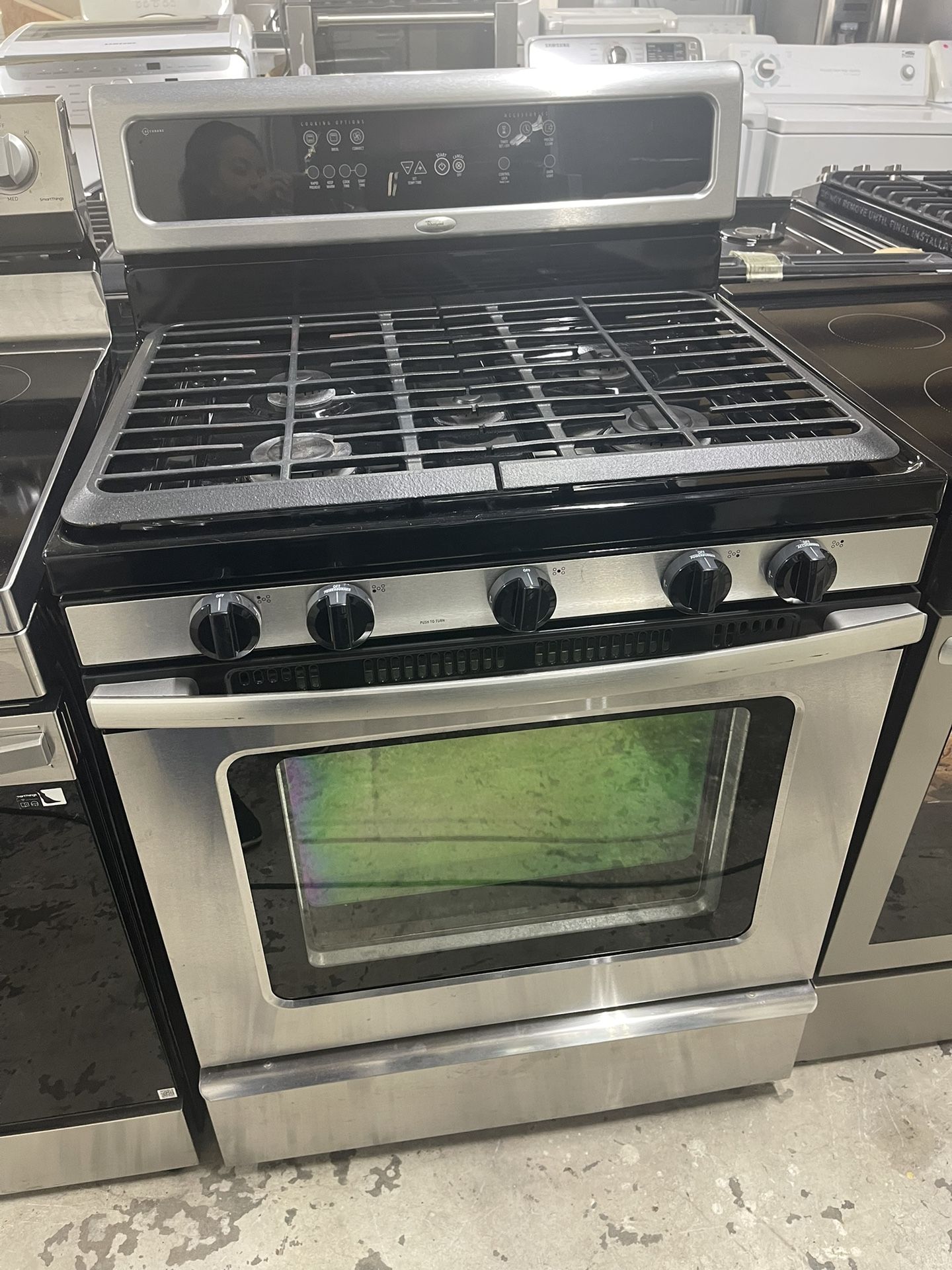 SELLING THIS 30” WHIRLPOOL CONVECTION GAS STOVE FOR $475+TAX!!! Condition: Used, but works great! Warranty: 90 days in home at no cost however we offer an extended warranty for 1 year for a fee Availability: Delivery, Install & Haul Away(if any) for a fee Dimensions are:(WxDxH): 29 7/8”-30”x 27 17/32”x 46 7/8”-Capacity: 5 Cu.Ft.