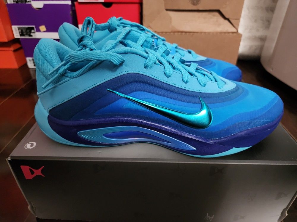 For sale is a brand new pair of Nike A'One basketball shoes in the exclusive "Indigo Girl" colorway. It has been sold out. They are Women's size 12 and Men's size 10.5. They are 100% authentic with original half box.