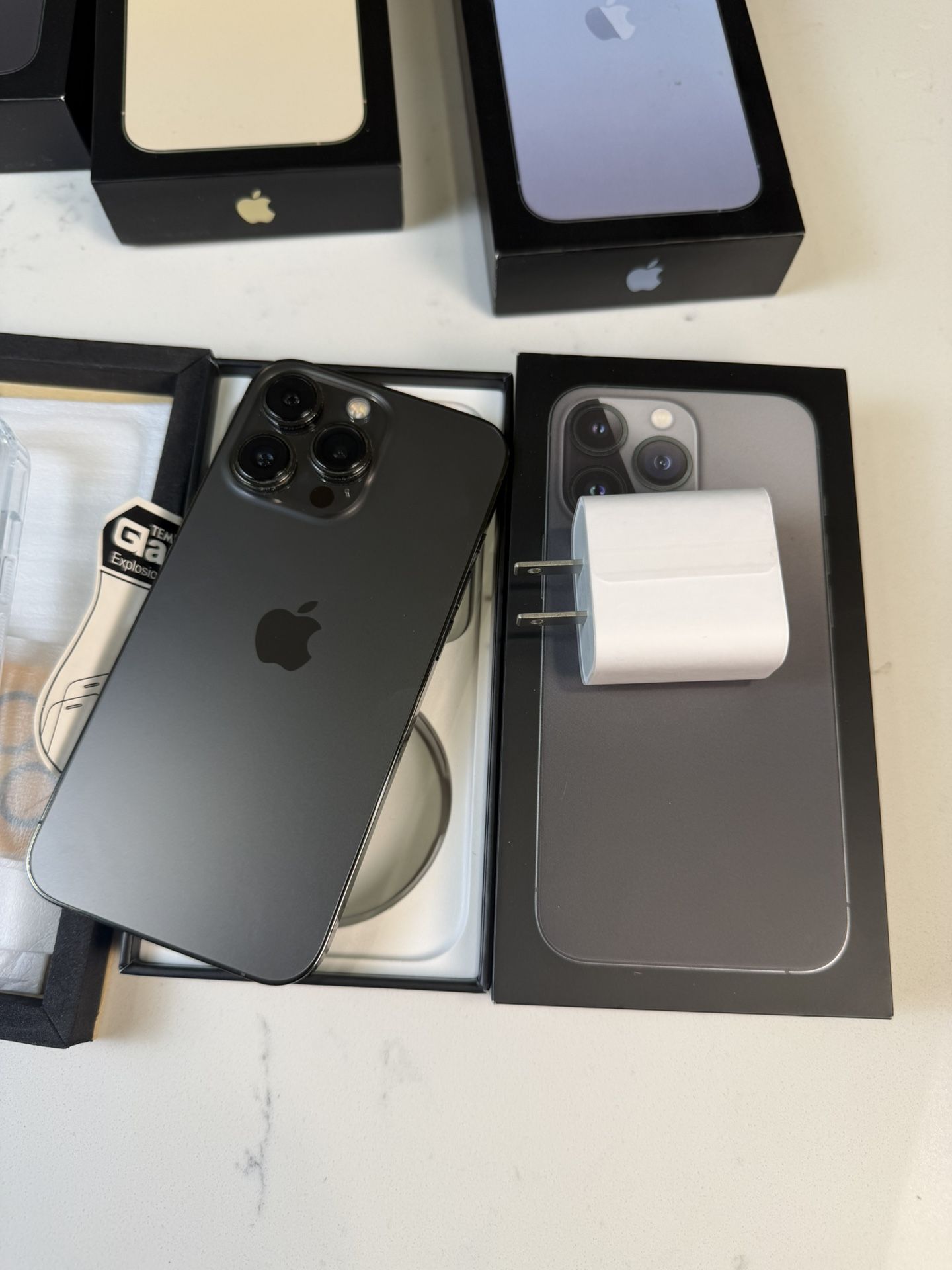 13 Pro 256GB Unlocked Graphite Black With Box Case And Screen Protectors And Fast Charger + Warranty Sale 🎄 **Warranty and Compatibility:** - Comes with a 14-day warranty in addition to any factory warranty still active - Unlocked To All Carriers **Condition Rating & Battery Health** 9/10 condition Battery 85 % **Save Money:** - The lowest price is available in cash. Please bring cash for the advertised discounted price. - Discounted prices for Students, Veterans, Military, First Responders, and Teachers are available (ID/Badge required). **Trade In and Save** trade in old device for credit we are looking mostly for iPhone 13 and up and iPad 2022 or newer MacBook 2022 or newer or high specs. Galaxy s23-25 and newer. Unlocked is best! **Payment Options:** - Cash pick-up is the most cost-effective option for advertised price - Zelle or Cash App , Apple pay incur a $10 fee - Card also accepted is+ additional fees (please ask for total if with card) - Same-Day Delivery is available ($20-40 additional) (Deposit Required in Advance)(please inquire about the process). Confirm the total cost with your chosen payment method. - Finance 3rd party options available Affirm and Afterpay, Klarna, Zip (GOOD/Decent Credit REQUIRED) **Peace of Mind:** - Purchase from a verified OfferUp Business 15 year experience for added assurance. - The device is guaranteed to be authentic and fully functional unless stated otherwise above - We perform a comprehensive 36-point functionality check using Industry-Leading diagnostic software (optional we can give you certificate to show it passed the tests!) **Additional Benefits:** - 14-day warranty (in addition to any factory warranty remaining, if applicable). - All genuine parts are used whenever we do refurbishing on major components unless otherswise stated above - We are a trusted 5 ⭐️⭐️⭐️⭐️⭐️ seller. - Clean IMEI guarantee. If you cannot activate for any reason guaranteed can assist you or exchange for other phone - Feel free to bring your SIM card / old phone with Esim and test the device before making a purchase.