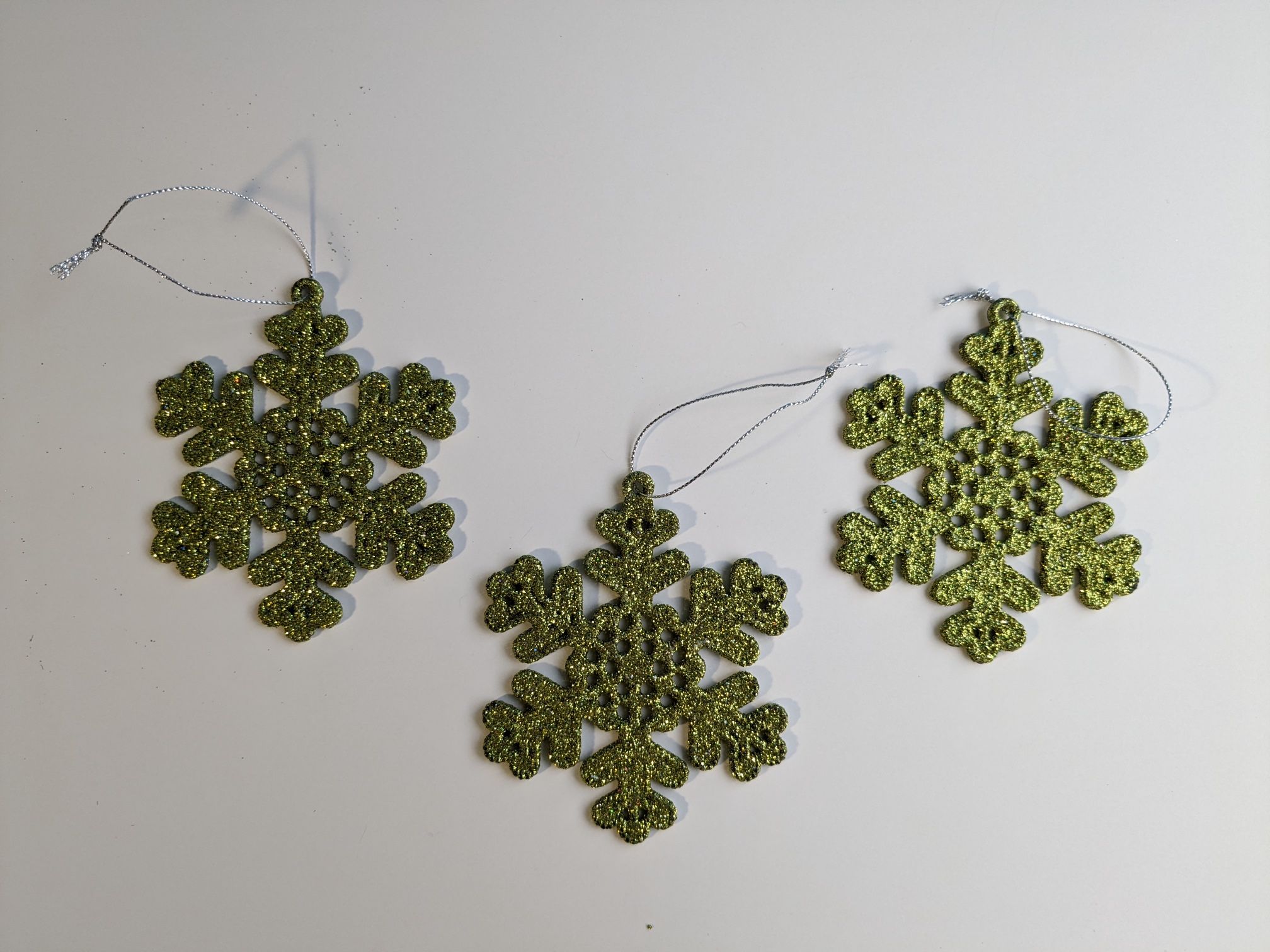 Glitter Snowflake Hanging Decorations - Christmas Decorations (Green) 3 items
